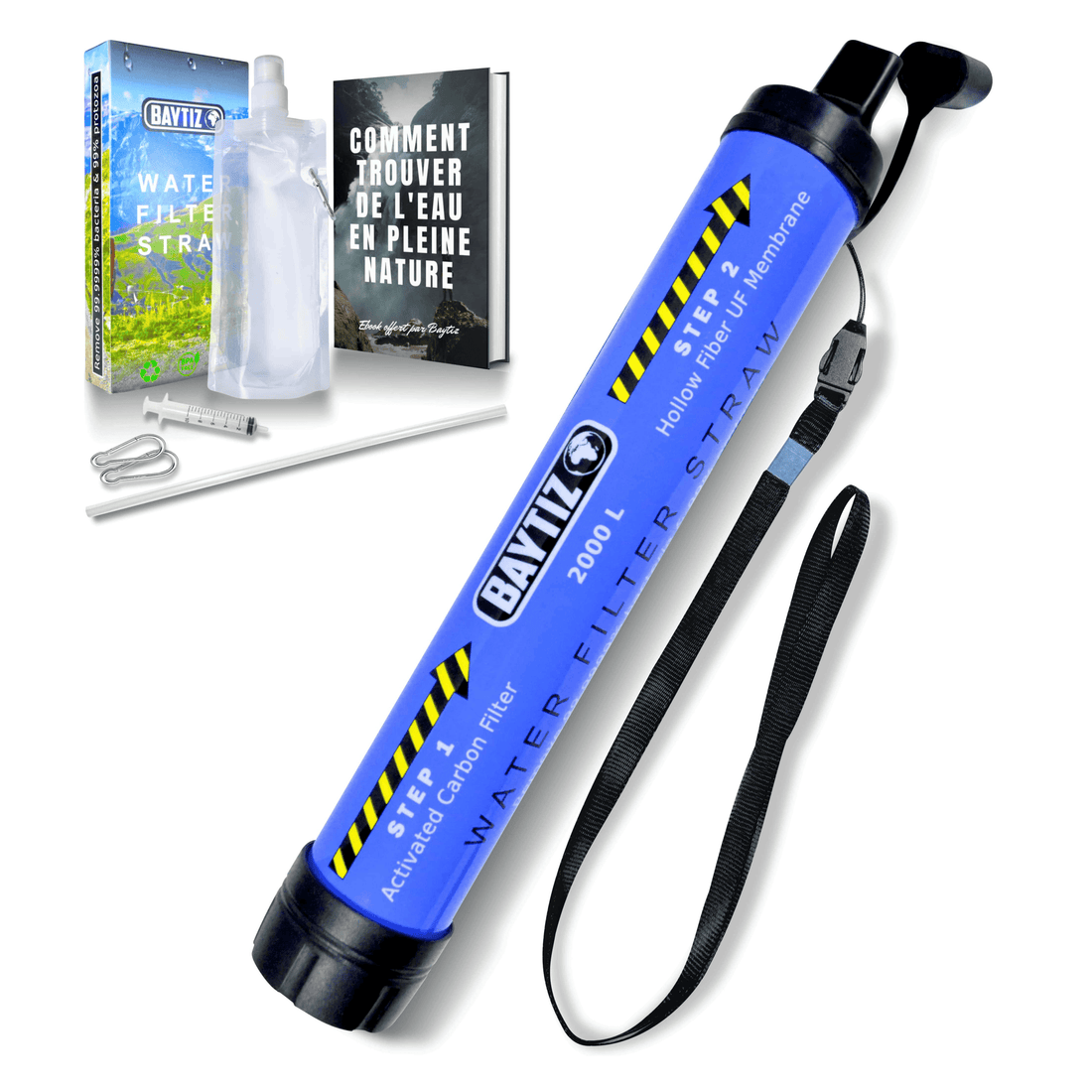 La paille filtrante Baytiz Elle filtre jusqu’à 99,999999 % des bactéries, 99,9999 % des protozoaires...