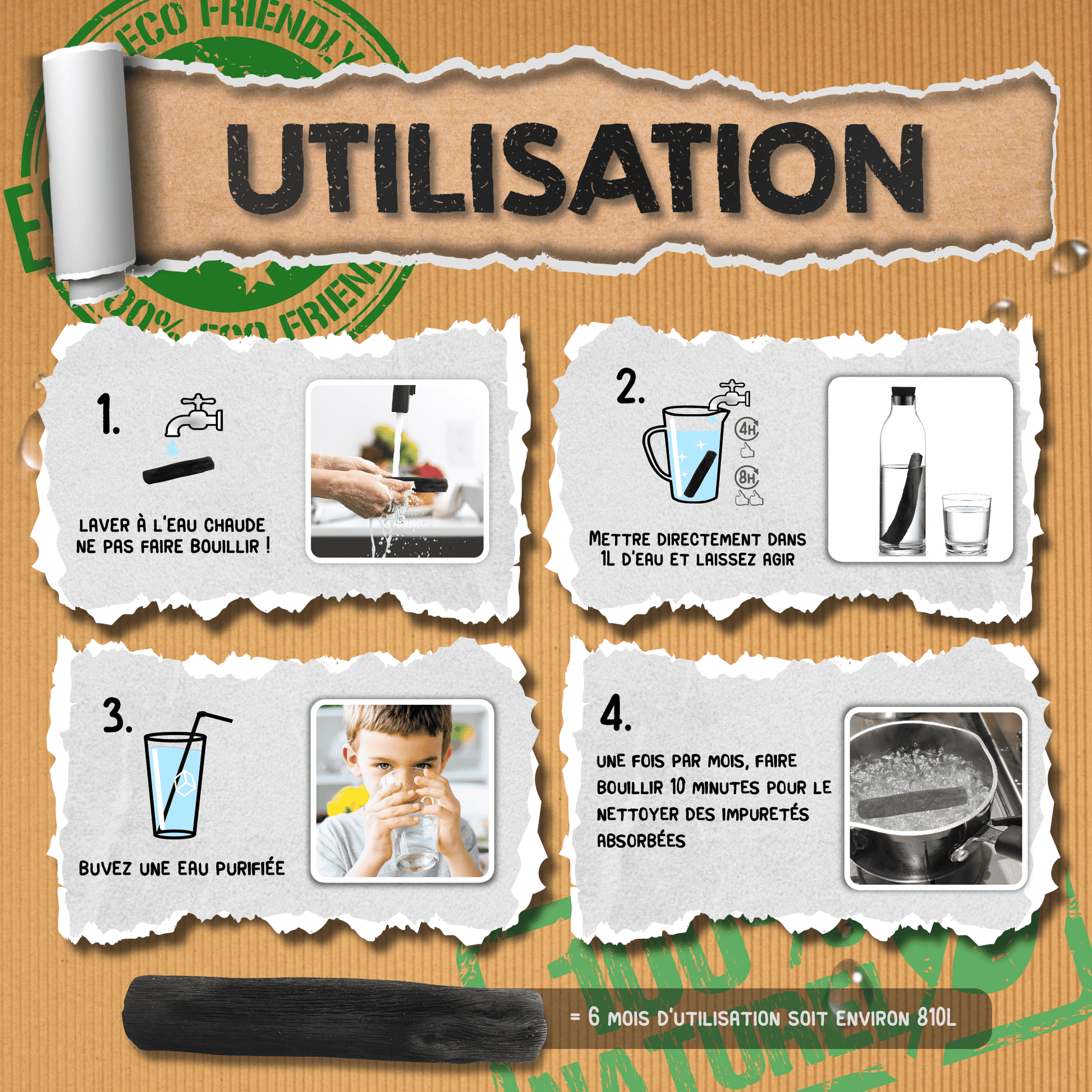 - rincez le Binchotan à l’eau chaude (sans liquide vaisselle) ;