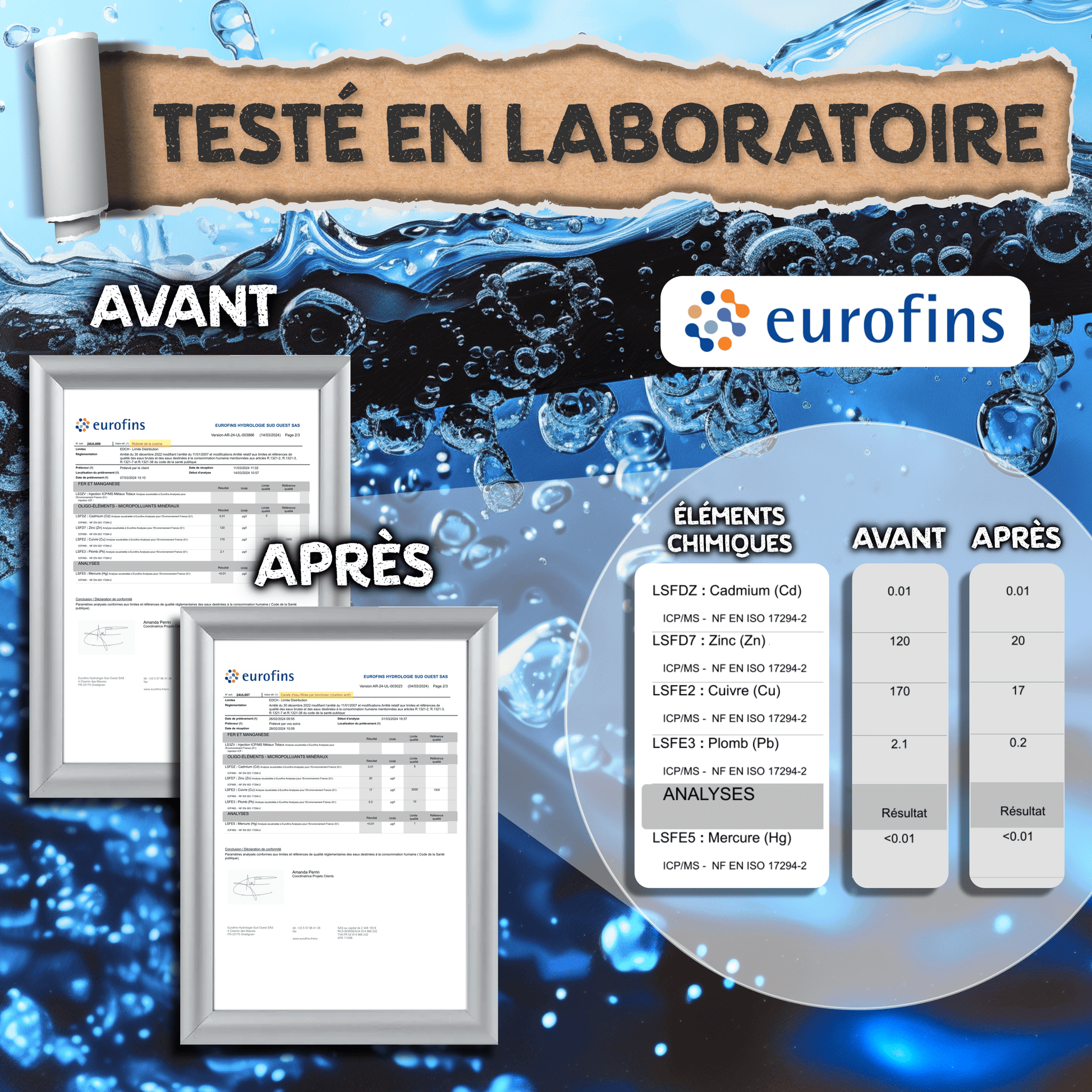 « Nous n’en sommes qu’à notre 2ᵉ jour d’essai, mais pour le moment nous sommes tout à fait satisfaits du produit. L’eau du robinet n’a plus le goût qui nous gênait, on a l’impression de boire de l’eau en bouteille. »