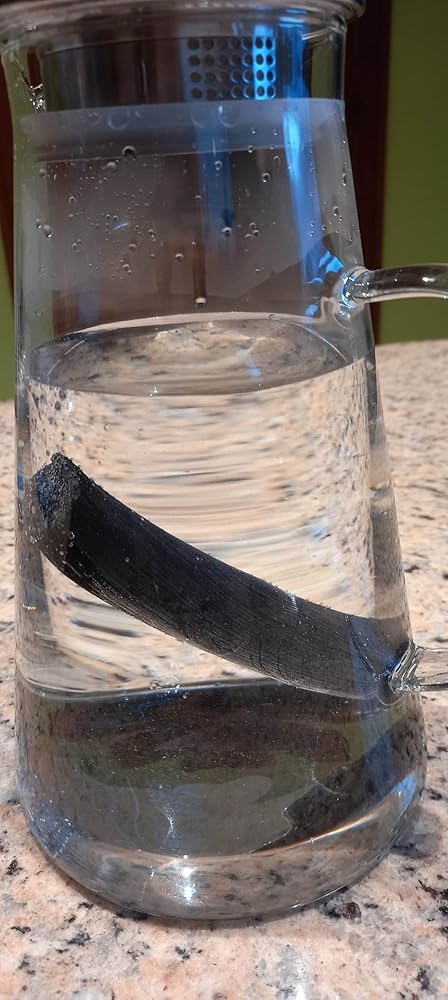 Le pH de l’eau peut être mieux équilibré et certains minéraux peuvent être relâchés par ce bâton de charbon, composé uniquement de bois naturel.